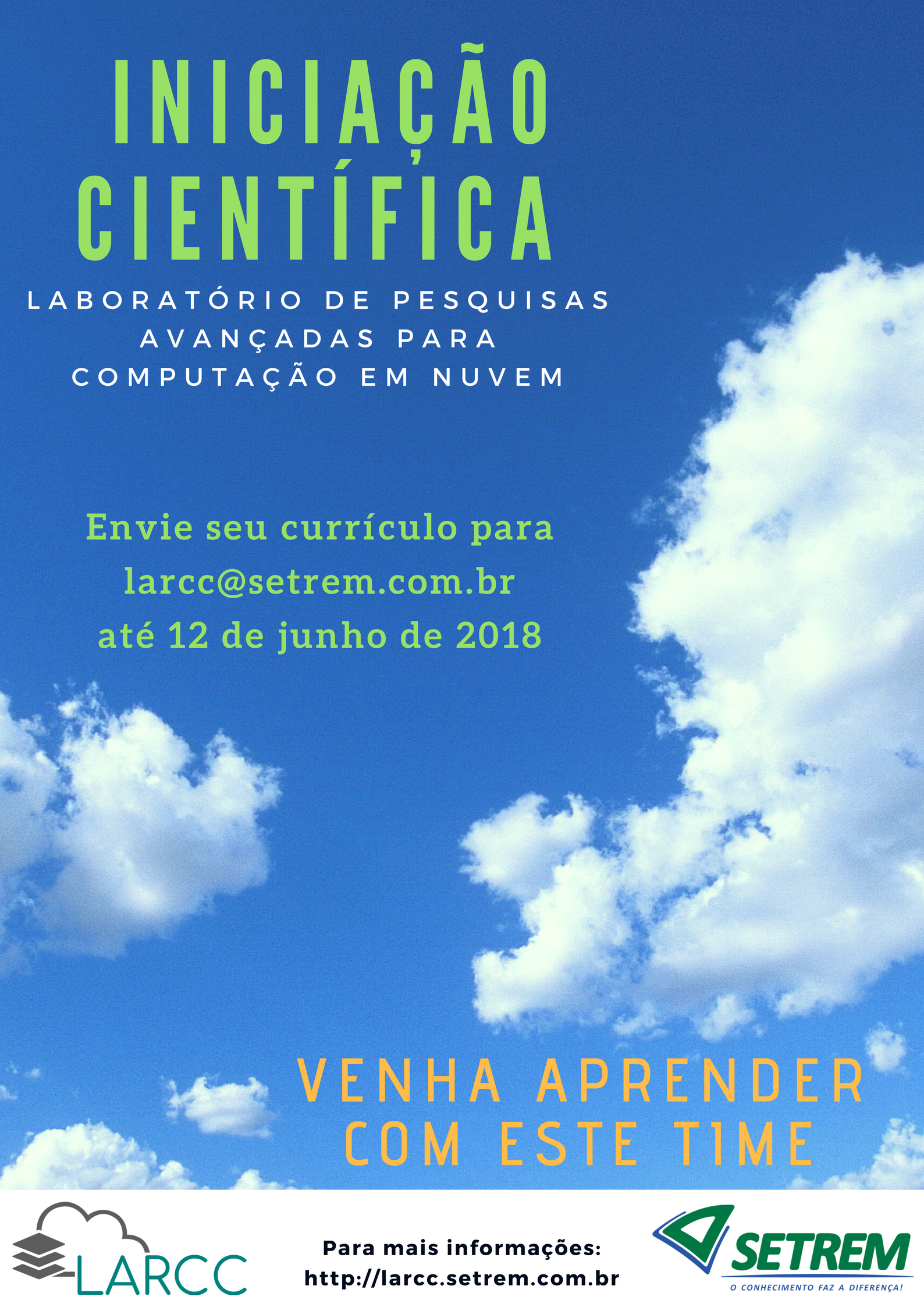 O Laboratório de Pesquisas Avançadas para Computação em Nuvem (LARCC) está com vagas abertas para alunos que gostariam de fazer iniciação científica. O LARCC realiza pesquisa de nível internacional e nacional. Isso possibilita que os alunos aprendam e tenham experiencias com pesquisadores do Brasil e da Europa. Além disso, o LARCC tem contribuído com a formação/preparação de alunos para ingressarem em um programa de mestrado, bem como melhorar o rendimento acadêmico nos cursos de Sistemas de Informação e Redes de Computadores.
